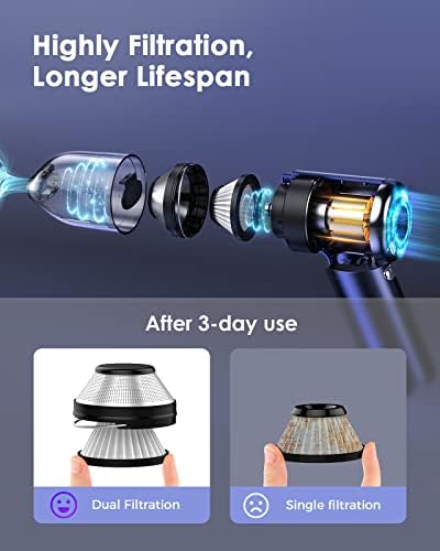 【Double Filtering, Much Cleaner】 Outer stainless filter separates big dirt, inner Hepa filter removes small dust and ashes. Both are easily detachable and washable.