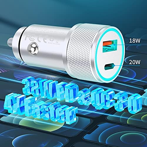 【4X Fast Charger Speed 】 Equipped with two suitable fast charging data cables, you can charge 2 devices anytime and anywhere. 38W PD Power Delivery USB C fast car charger with USB C to lightning cable fast charging for iPhone 12 and iPhone 8 later models 4X Faster than an original 5W charger.